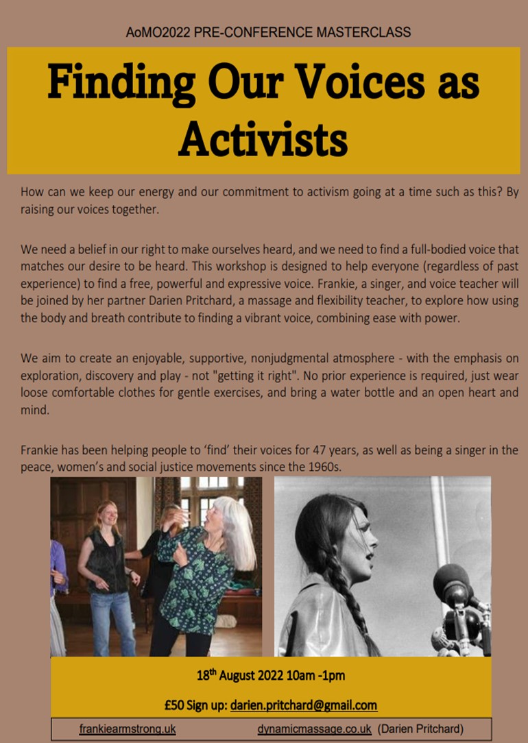 singer in the peace, women’s and social justice movements since the 1960s. Her experience tells us that we can maintain our energy and commitment to activism by raising our voices together.